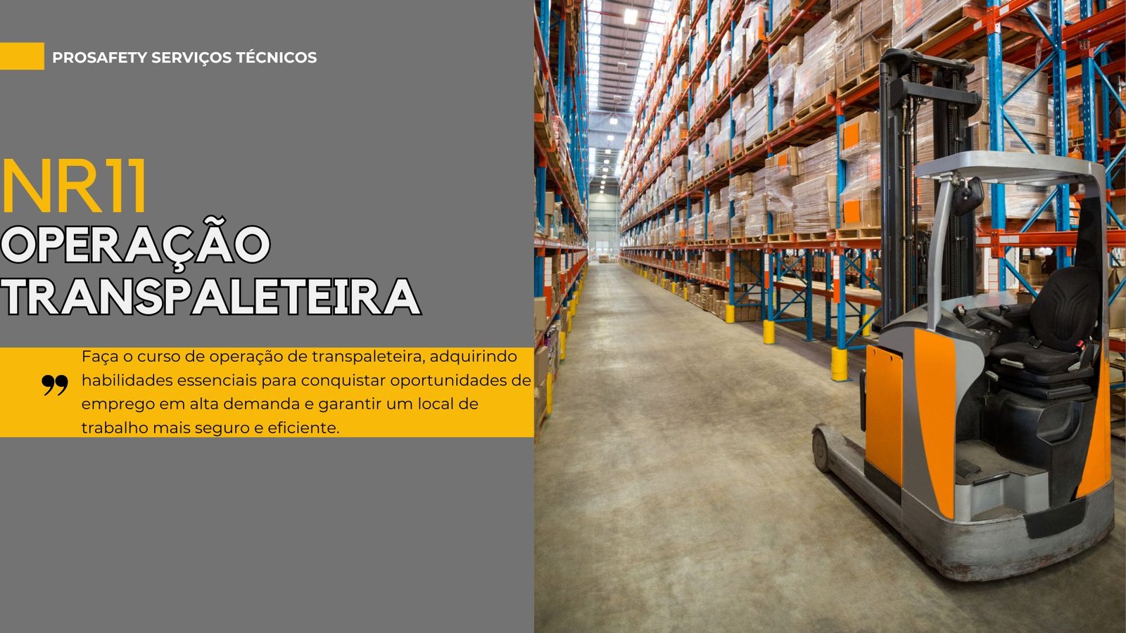 O treinamento sobre o uso seguro de transpaleteiras elétricas é projetado para fornecer aos participantes os conhecimentos e habilidades necessários para operar esses equipamentos de forma segura e eficiente. Com base nos requisitos da Norma Regulamentadora NR 11, o treinamento abrange uma variedade de tópicos, incluindo procedimentos de operação, técnicas de segurança, manutenção preventiva e reconhecimento de riscos potenciais.